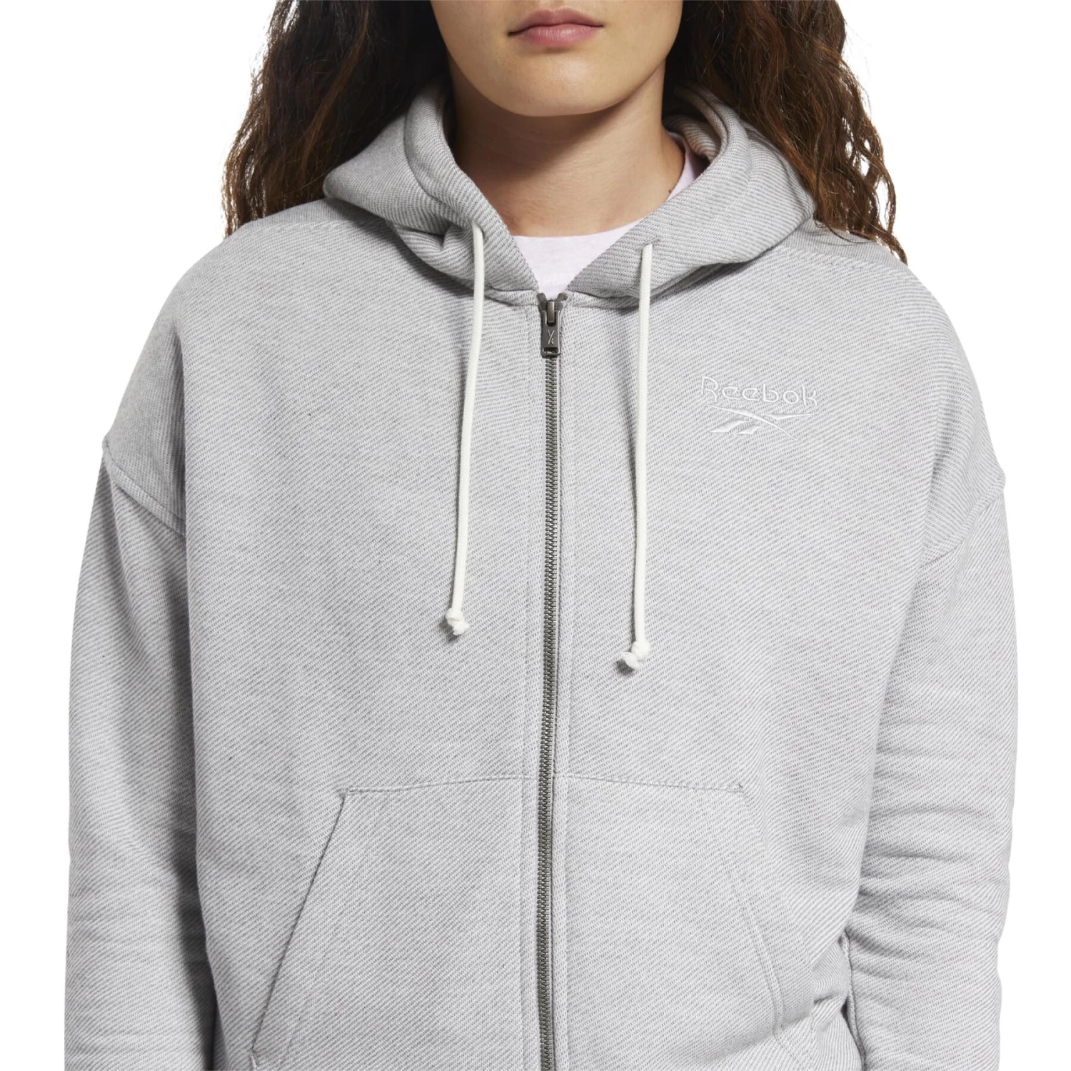 - Zip intégral et capuche avec cordon de serrage.